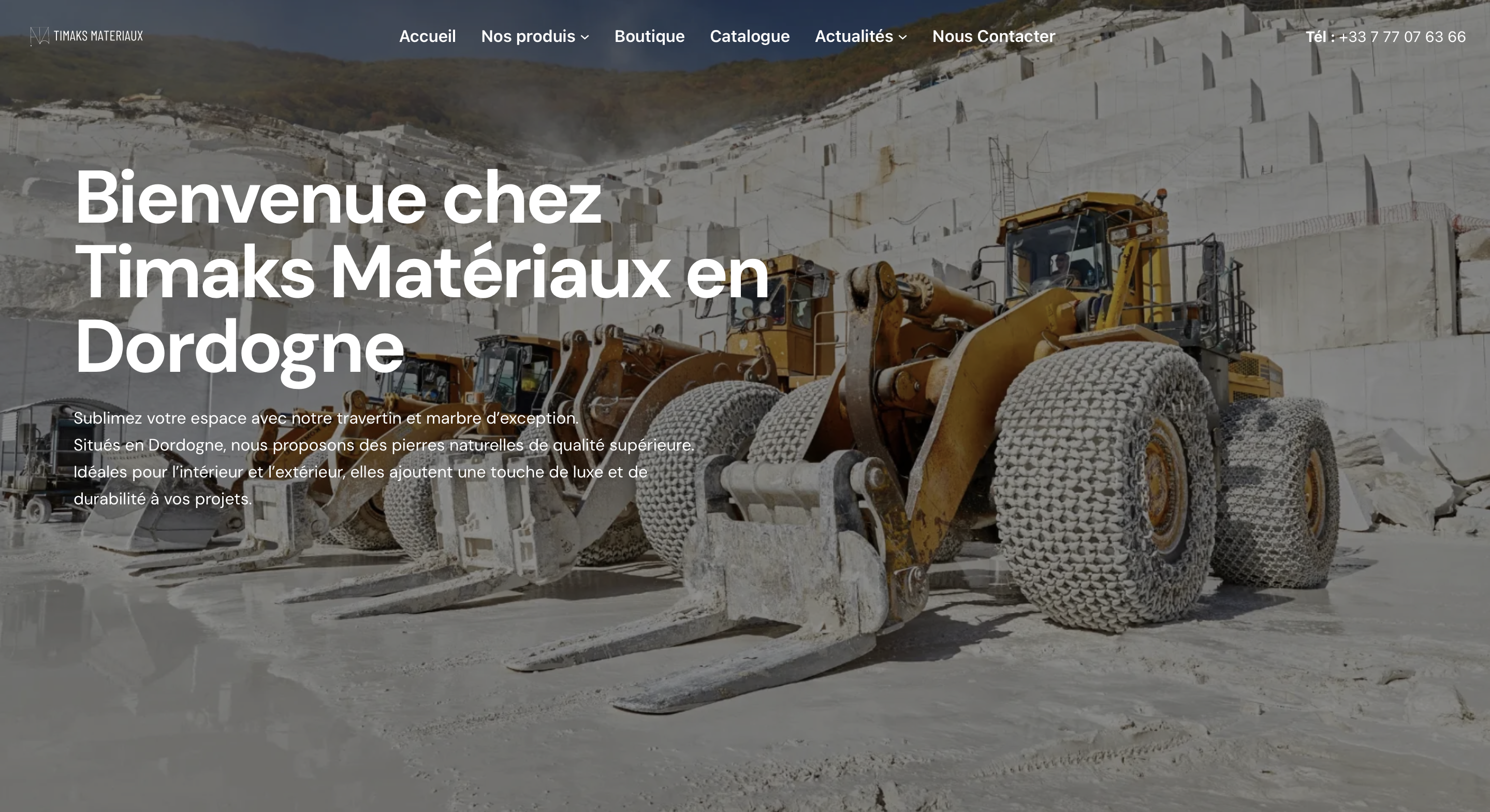 Timaks Matériaux était une petite entreprise locale spécialisée dans la vente de pierres naturelles en Dordogne. Grâce à l’agence Viral, ils ont fait un bond dans le futur ! Nous avons transformé leur activité artisanale en un site e-commerce performant, leur permettant de vendre leurs pierres de qualité bien au-delà des frontières régionales.